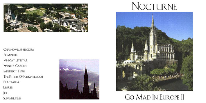 1. Chaenomeles Speciosa 2. Bombshell 3. Vinicat Utilitas 4. Winter Garden 5. Imperfect Tense 6. The Kitties of Kirkintilloch 7. Fractaelia 8. Liberte 9. Joie 10. Summertime